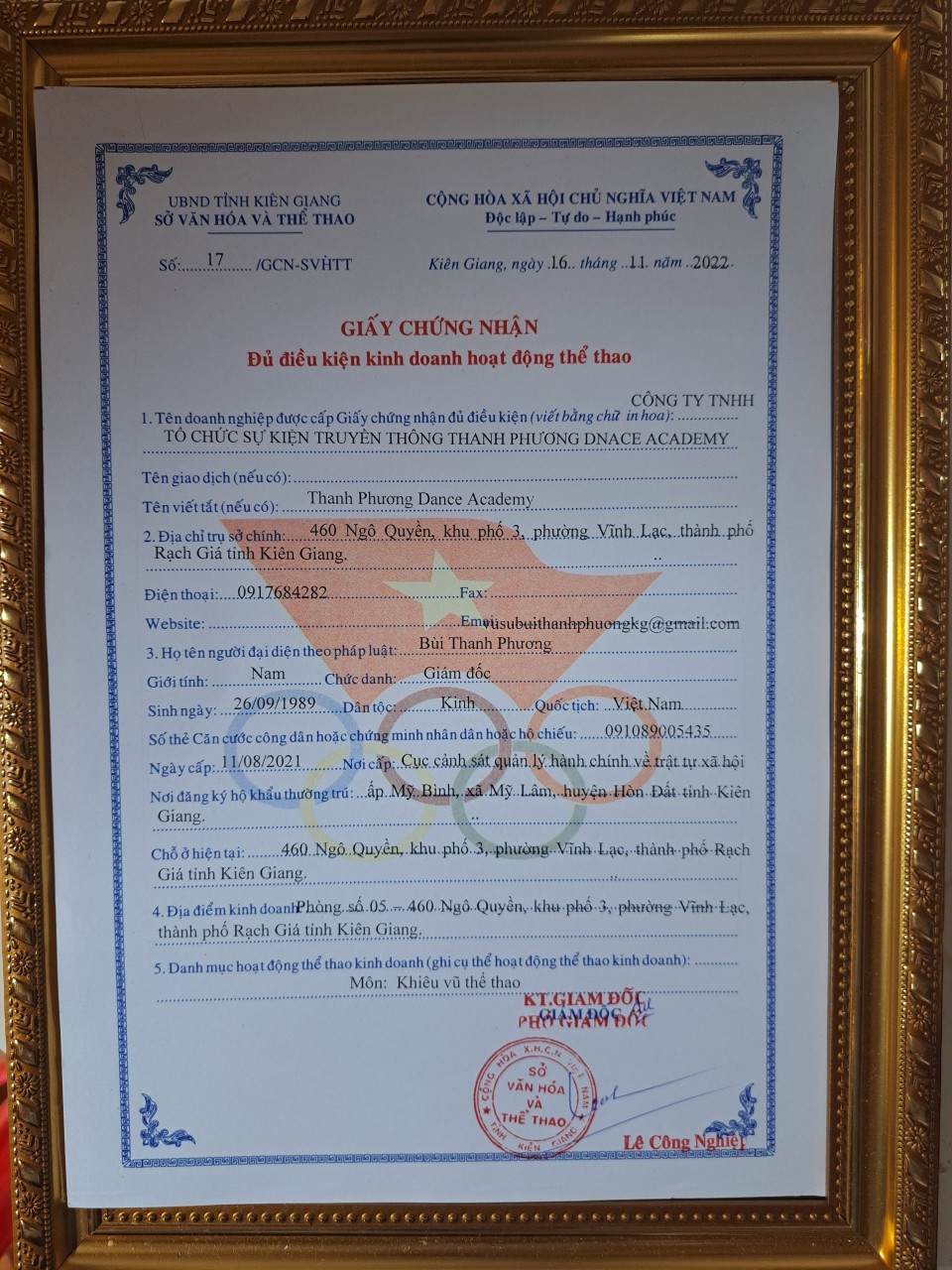 Đây là các chứng nhận, bằng cấp mà Khiêu Vũ Thanh Phương nhận được trong thời gian qua