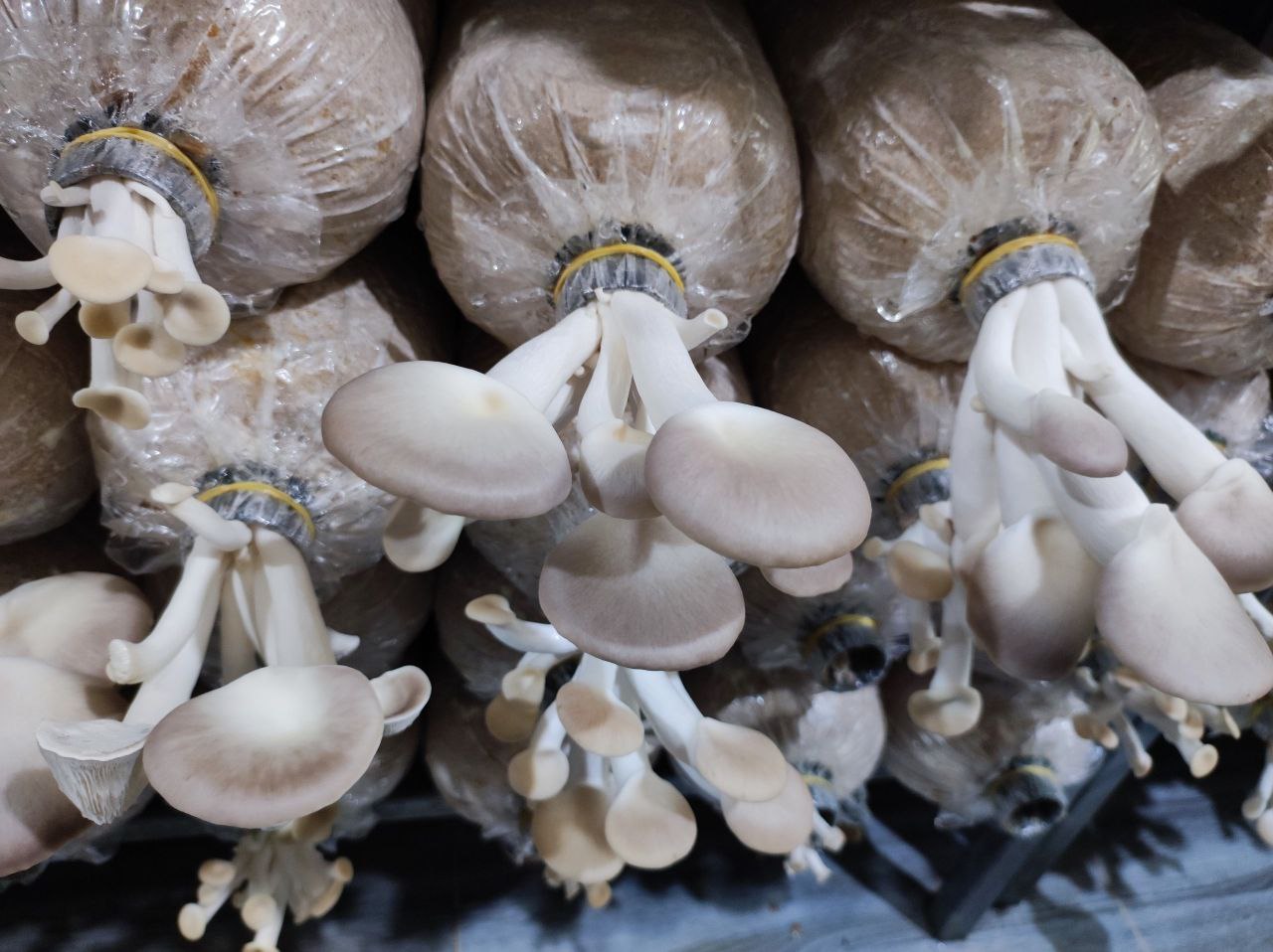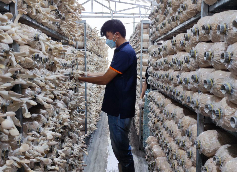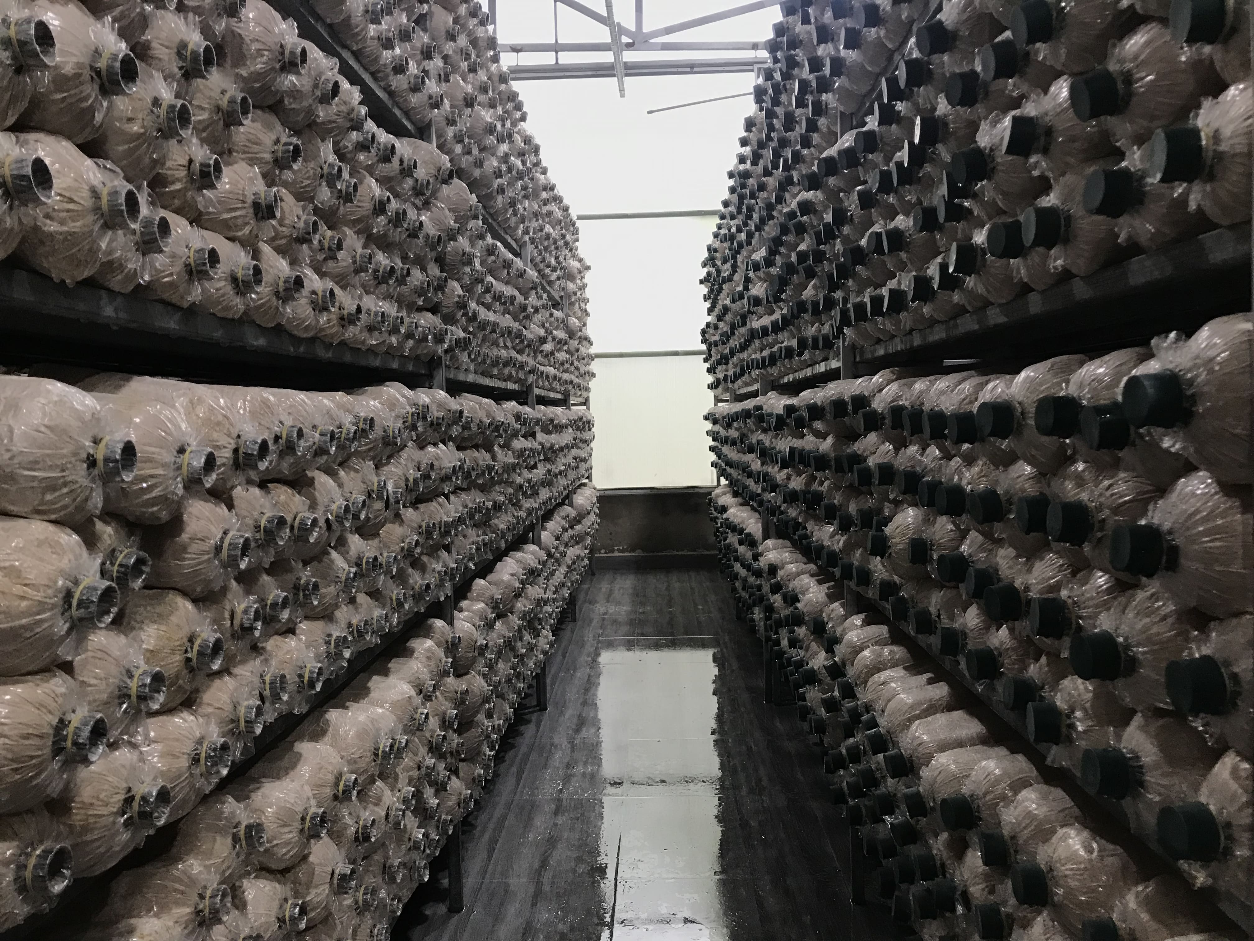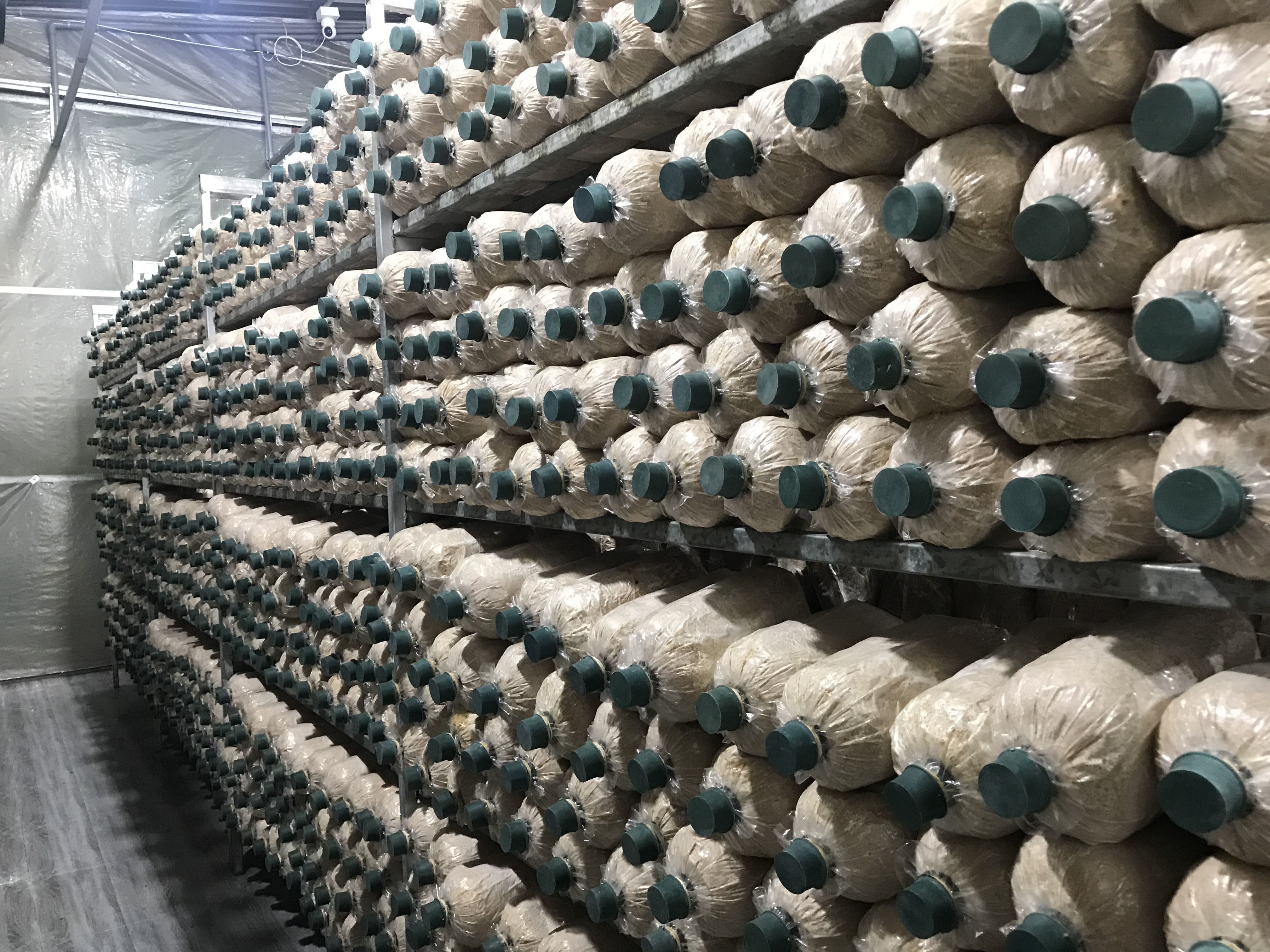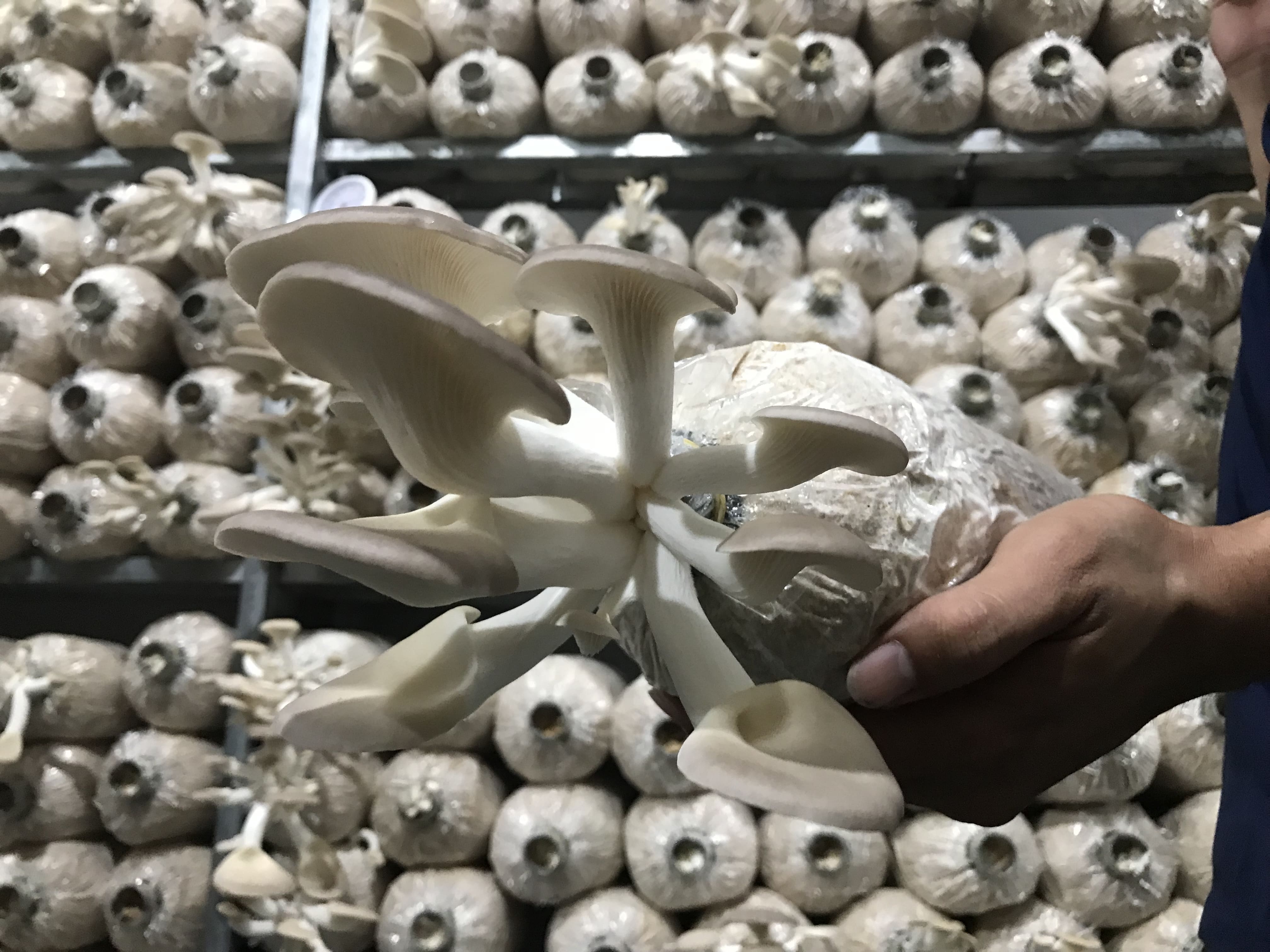 Với hệ thống trang trại nuôi trồng nấm hiện đại, đảm bảo thoáng mát, nhưng vẫn hạn chế được gió lùa và ánh nắng trực tiếp cho nấm. Kệ phôi được bố trí hợp lí để nấm có không gian thở và người chăm sóc, thu hái, tưới tiêu dễ dàng, đảm bảo năng suất cao, thu hoạch nhanh.