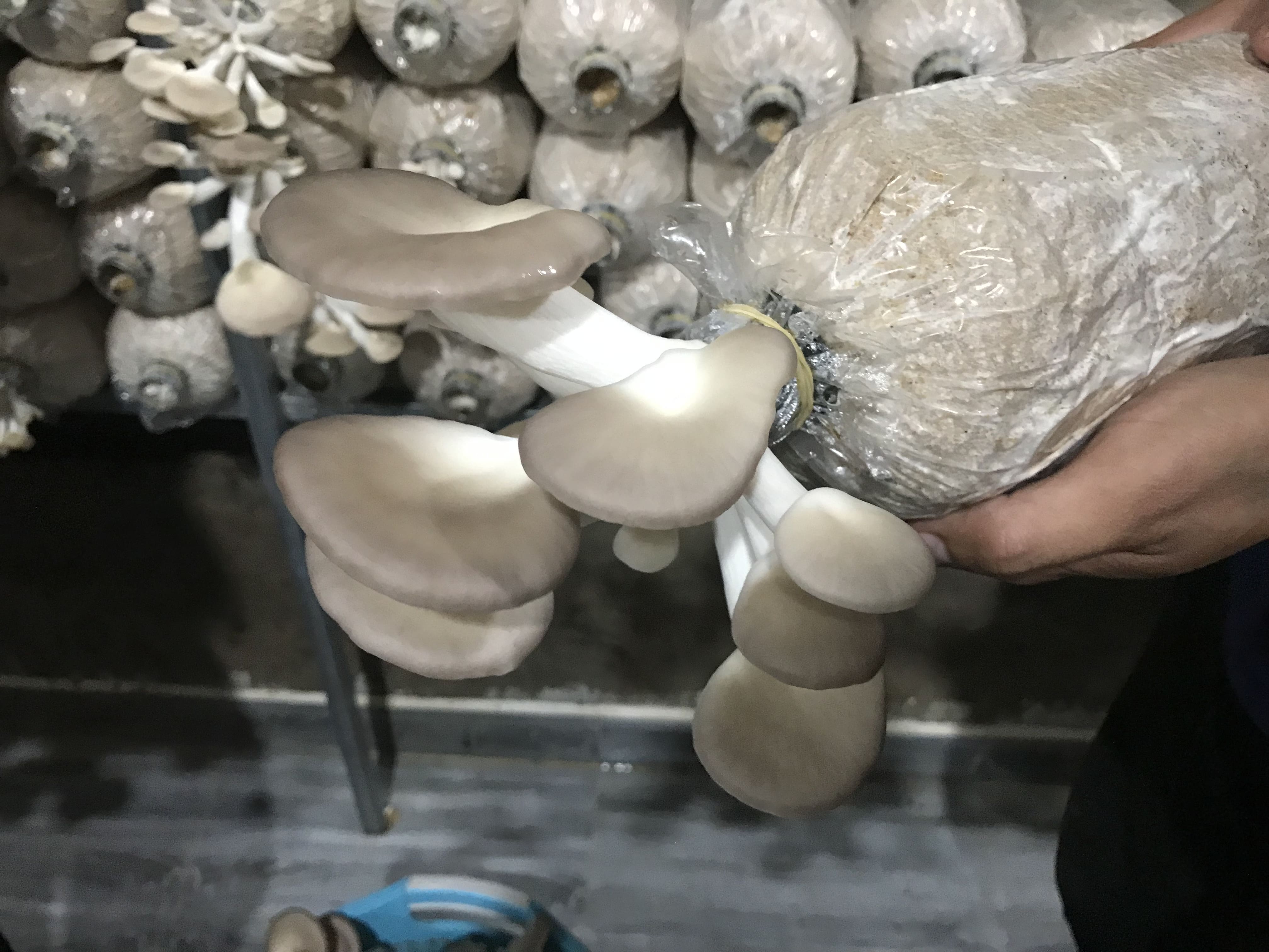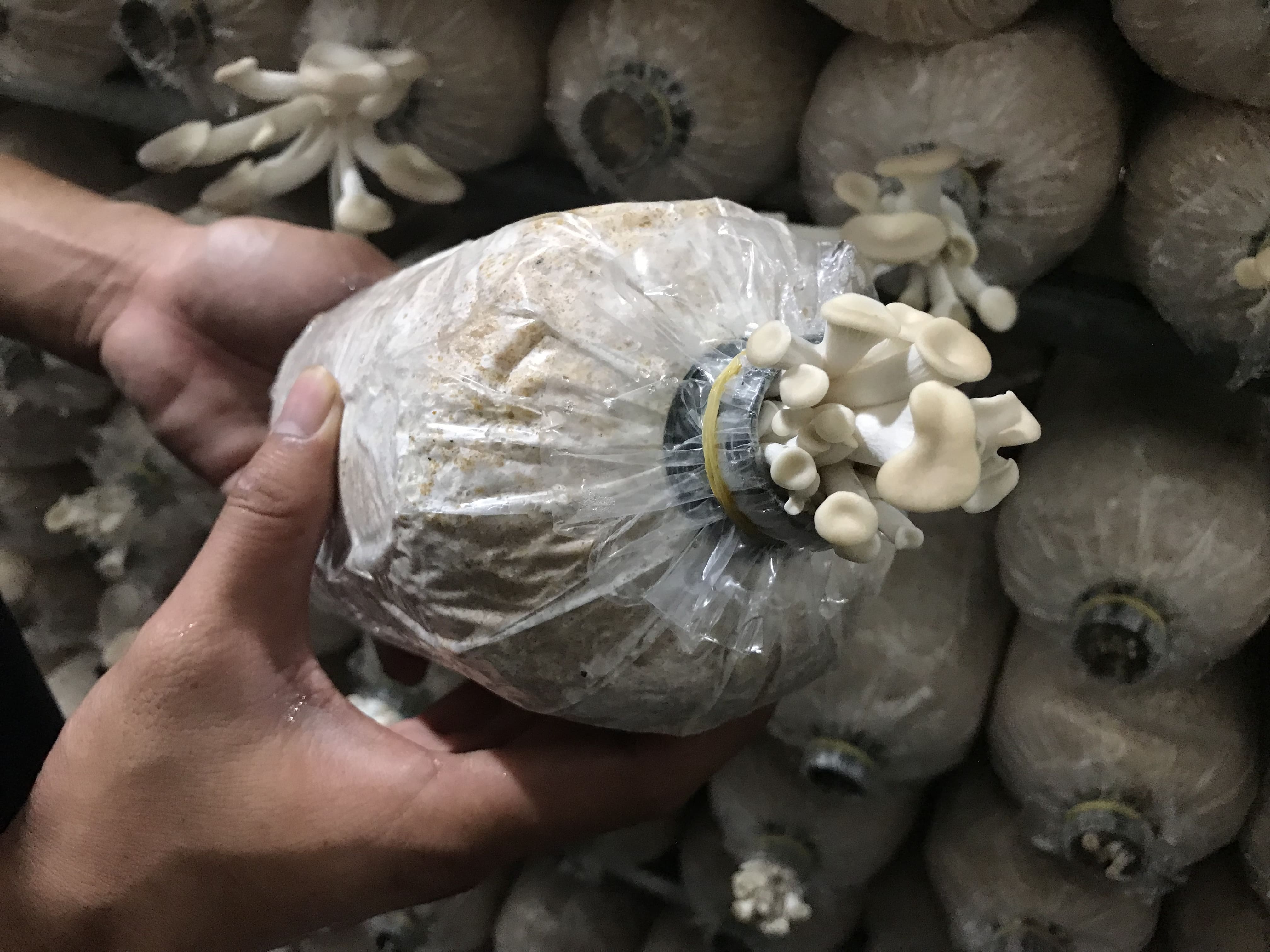 Giai đoạn ủ phôi nấm được thực hiện đúng quy trình, đảm bảo phôi trưởng thành tốt, khoẻ mạnh. Độ ẩm trong phòng sẽ được kiểm tra thường xuyên, nhằm đảm bảo sự phát triển của nấm. Nấm sẽ được chăm sóc thật kỹ trước khi đến giai đoạn thu hoạch. Và khi đến thời gian thu hoạch, nấm sẽ được người chăm sóc cẩn thận hái xuống từ phôi nấm trên kệ, và đặt nhẹ nhàng vào trong rổ.