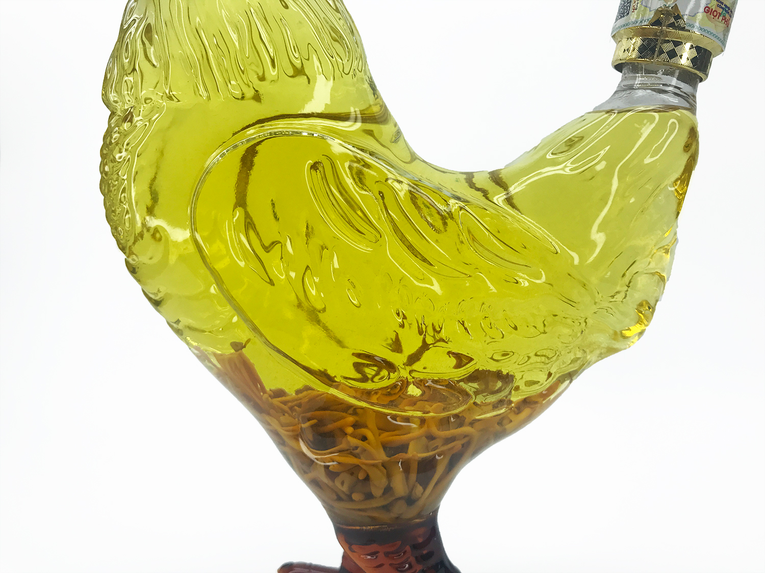 Rượu đông trùng hạ thảo có kiểu dáng hình gà rất sang trọng, trưng vào tủ kính vừa thấy sang lại mang giá trị về mặt sức khỏe. Quá là tuyệt vời đúng không nào.
