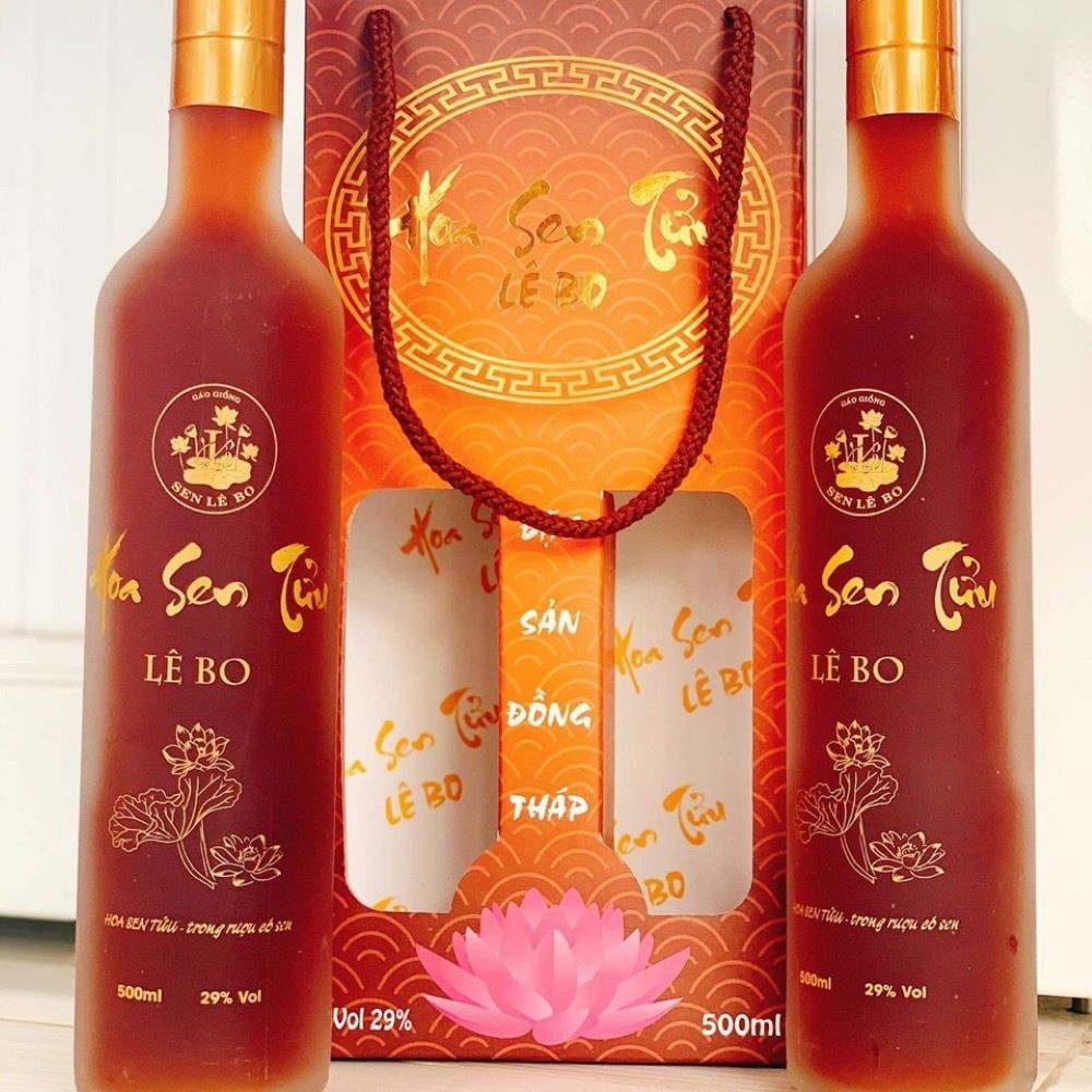 Rượu Hoa Sen Tửu Lê Bo được ngâm ủ từ những cánh sen Gáo Giồng - Đồng Tháp kết hợp cùng rượu gạo cổ truyền, trải qua thời gian ngâm ủ công phu, đã cho ra đời loại rượu Sen thơm ngon, nồng đượm.