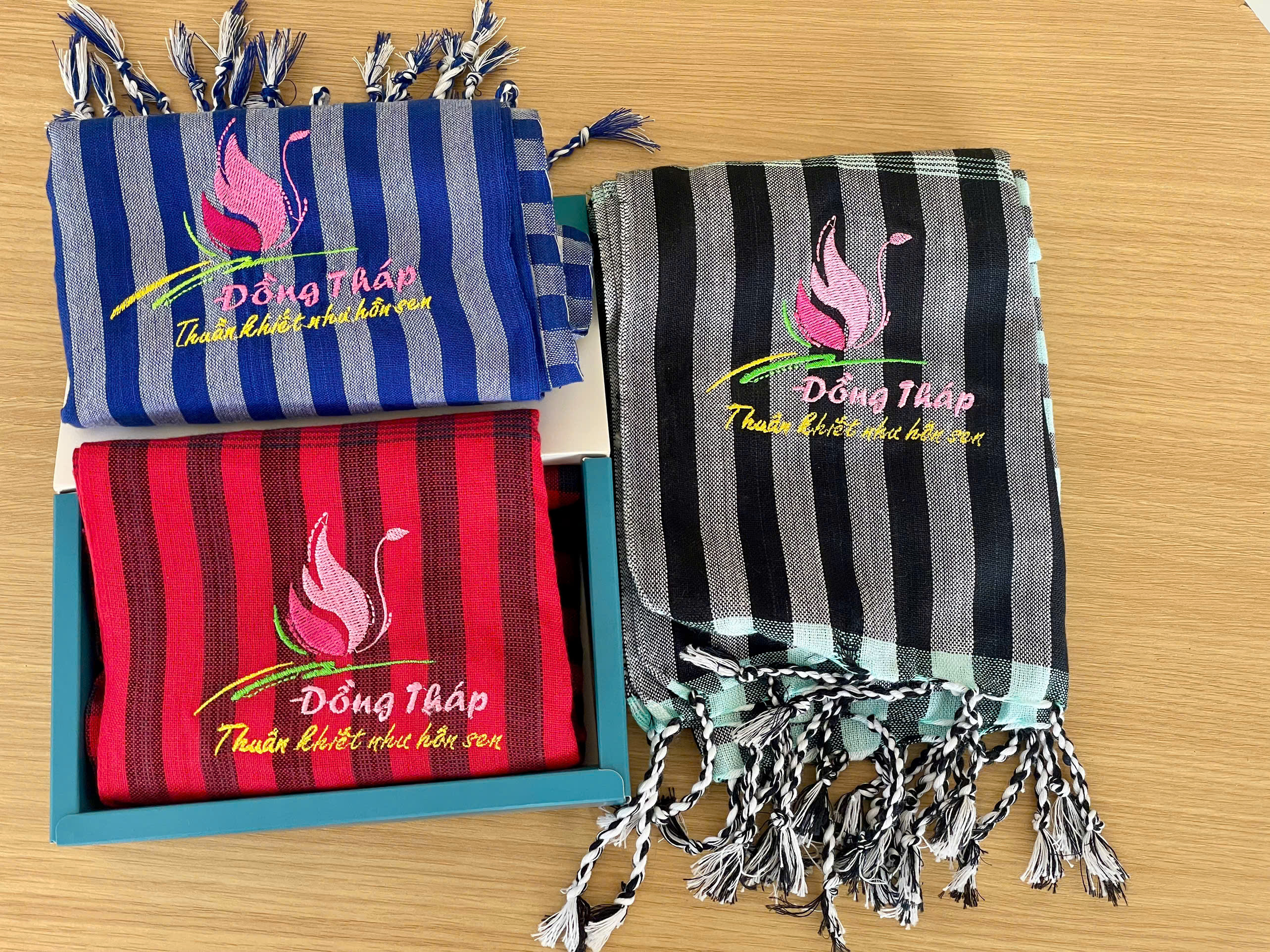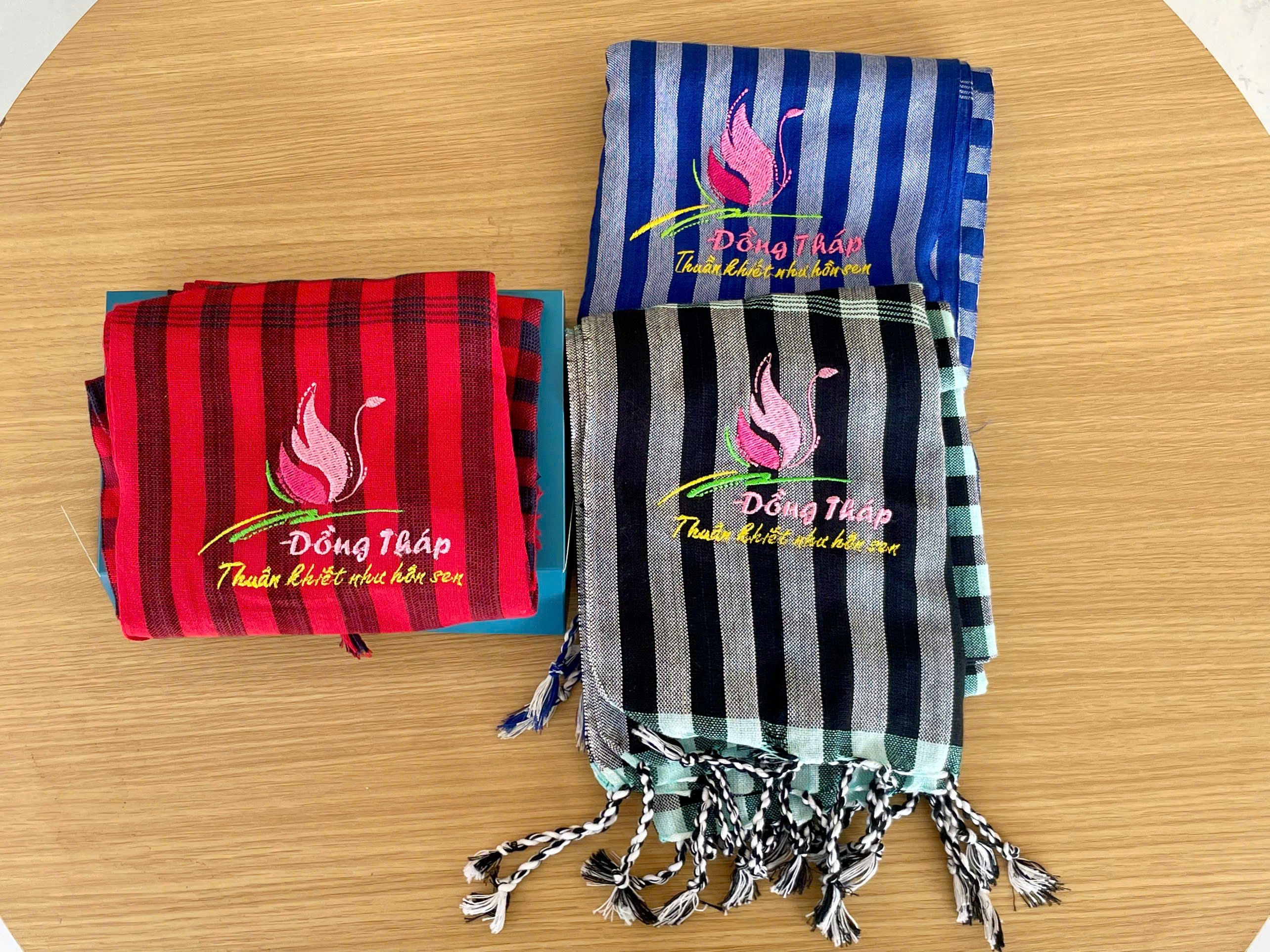 Khăn rằn là một sản phẩm dệt truyền thống nổi tiếng của vùng Đồng Tháp, đặc biệt là từ làng nghề dệt choàng Long Khánh. Với đặc trưng hoa văn độc đáo, khăn rằn không chỉ là vật dụng hàng ngày mà còn mang ý nghĩa văn hóa sâu sắc.