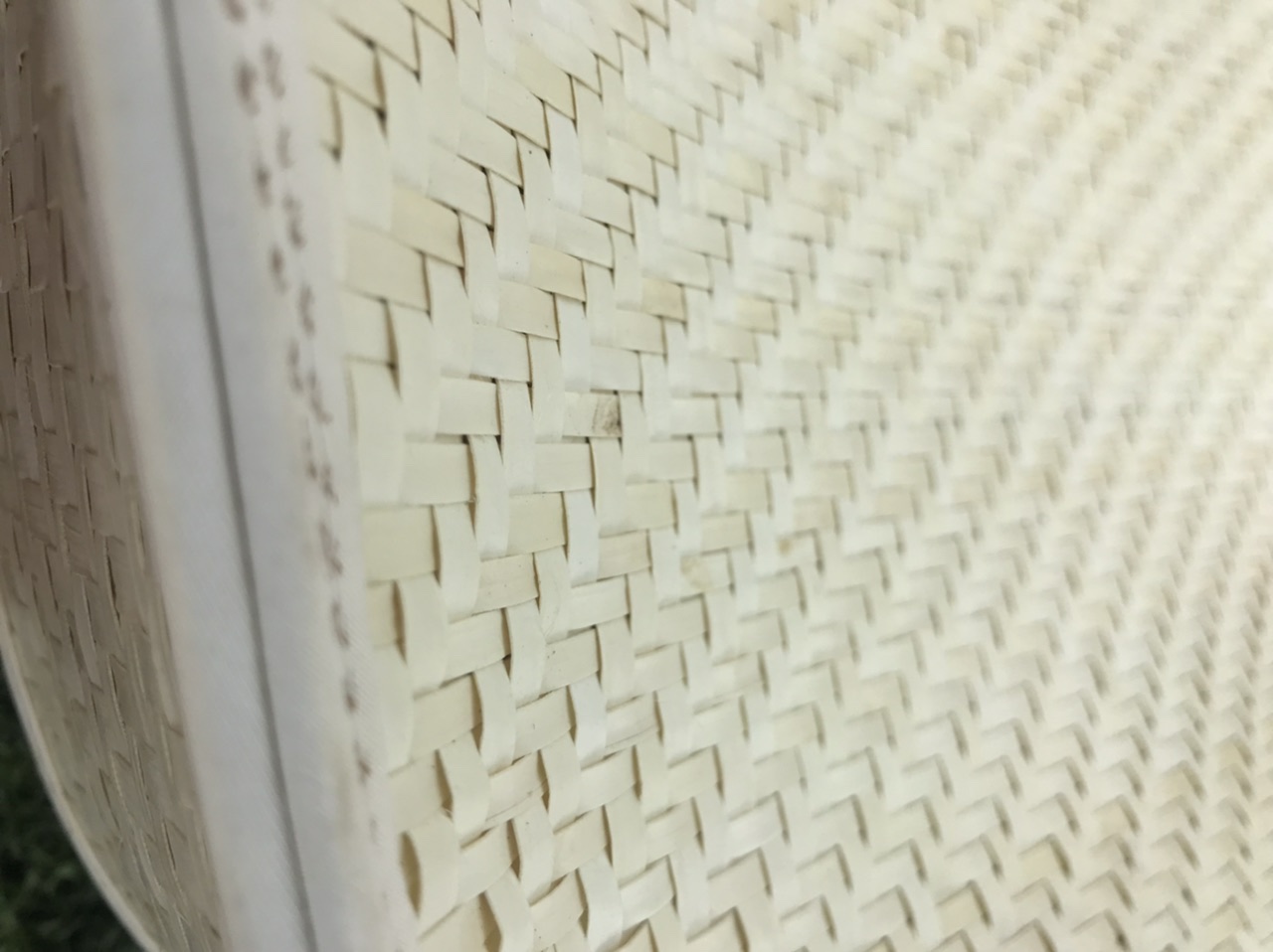 - Lớp bên ngoài được đan chắc chắn bằng cỏ bàng, những đường đan chi tiết tỉ mỉ, được làm thủ công bởi các nghệ nhân là người dân địa phương. Vì lớp ngoài là lớp cỏ khô nên nó rắn chắc, đàn hồi tốt, được thiết kế để làm bộ khung cho giỏ. Đường chỉ may ngay ngắn, ngăn nắp, đồng đều. Màu chỉ được lựa chọn, hài hoà với tổng thể màu của giỏ, không bị chõi màu. Cho nên, lớp vỏ ngoài của giỏ được ví như người phụ nữ Việt Nam rắn rỏi.