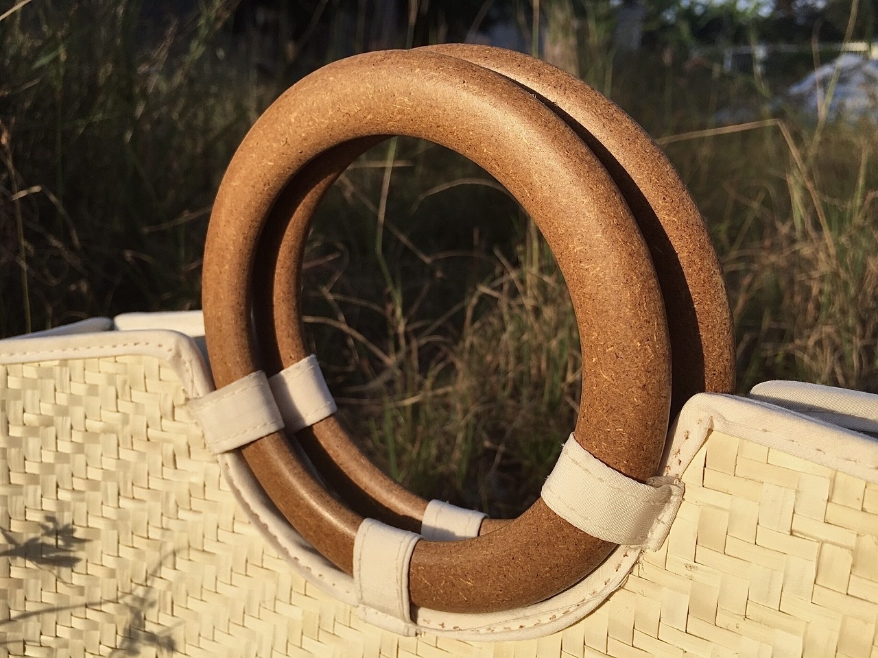 Sản phẩm Giỏ Bàng Xách Tay là sản phẩm được tạo thành từ 100% cây cỏ bàng tự nhiên, với thiết kế hài hoà, mang ý nghĩa tôn vinh người phụ nữ Việt. Giỏ được cấu tạo lớp ngoài bằng cỏ bàng, được đan kín kẽ, chắc chắn, tượng trưng cho tinh thần rắn rỏi, bất khuất của người phụ nữ. Bên trong giỏ được lót một lớp vải, tượng trưng cho sự mềm mại, dịu dàng, đảm đang vốn có của người phụ nữ. Phần quai xách được thiết kế bằng gỗ tròn dễ cầm nắm