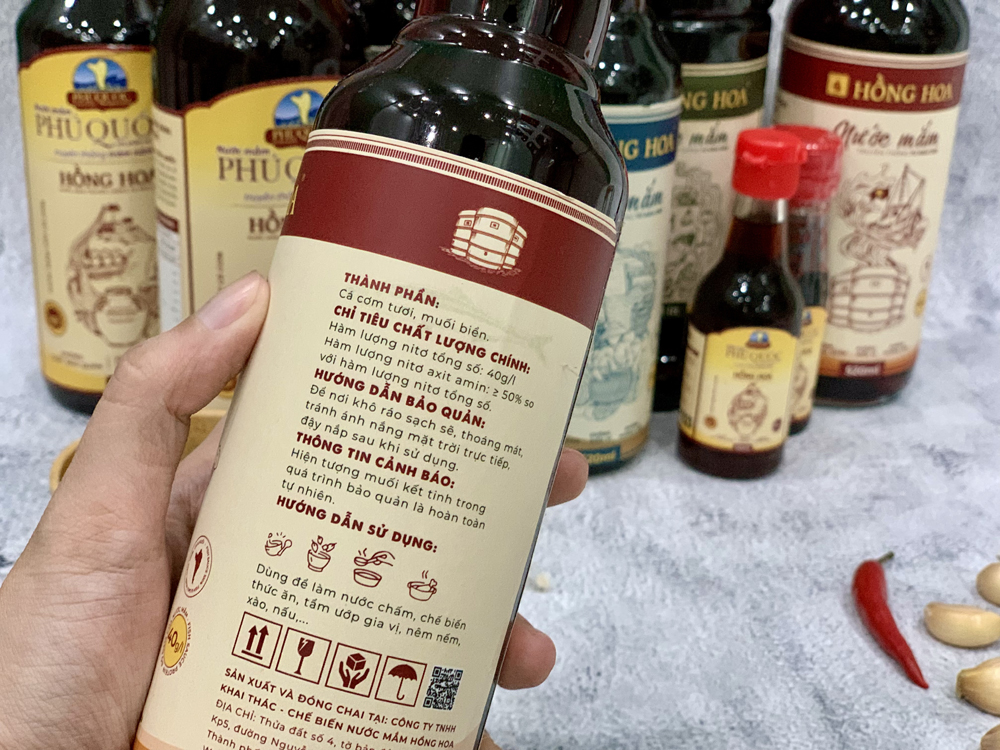 - Sản xuất: Công ty TNHH Khai Thác Chế Biến Nước Mắm Hồng Hoa