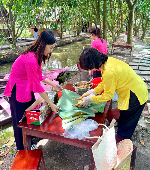 Không chỉ dừng lại ở việc làm bánh dân gian mà còn là cơ hội để du khách khám phá sâu hơn về văn hóa ẩm thực Nam Bộ. Tìm hiểu về nguyên liệu bản địa như gạo, dừa, rau mơ, lá chuối… và cách người dân nơi đây sử dụng các nguyên liệu này để tạo ra những món ăn dân dã nhưng giàu dinh dưỡng.