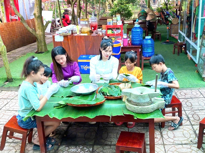 - Thứ Năm: trải nghiệm làm bánh lá mơ.