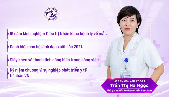 Bs CKI Trần Thị Hà Ngọc hiện là Phó Giám đốc Bệnh Viện Mắt Bình Tâm