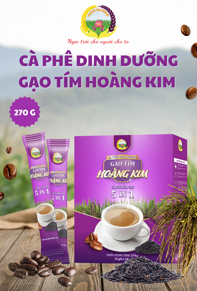 - Cà phê dinh dưỡng gạo tím hoàng kim, mì ăn liền gạo tím than, nước tương, thanh snack gạo tím.