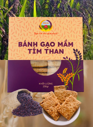 - Bột mầm gạo tím than, bún khô gạo tím than hoàng kim, bánh mầm dinh dưỡng gạo tím hoàng kim, cháo gạo tím than hoàng kim, cơm tím sấy rong biển hoàng kim.