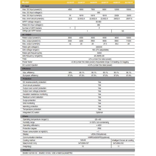 - Bảo vệ chống cô lập (anti-islanding) chủ động và bị động, chức năng điều chỉnh công suất chủ động liên tục (0-100%).