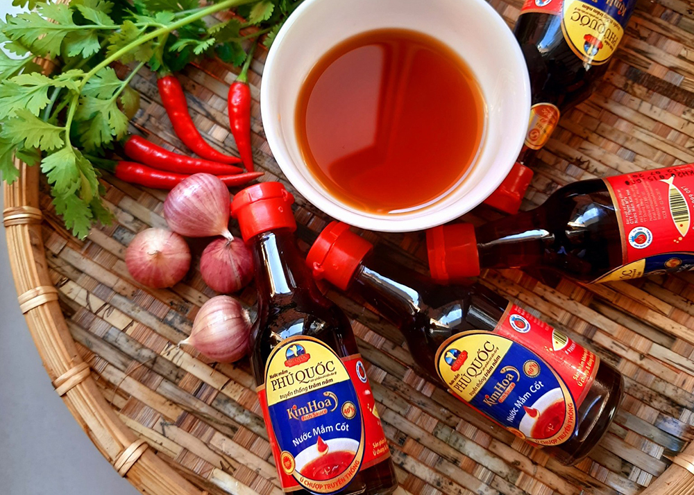 Nước mắm Kim Hoa là nước mắm nguyên chất được làm từ nguồn nguyên liệu các cơm tại vùng biển Phú Quốc, nguyên liệu được tuyển chọn kỹ lưỡng kết hợp với kinh nghiệm sản xuất nước mắm truyền thống từ hàng trăm năm tạo ra một loại nước mắm có mùi thơm đặc trưng; màu cánh gián đậm, trong; vị ngọt, béo của đạm và vị mặn của muối cùng hòa quyện tạo nên hương vị đặc trưng tinh túy của nước mắm Phú Quốc