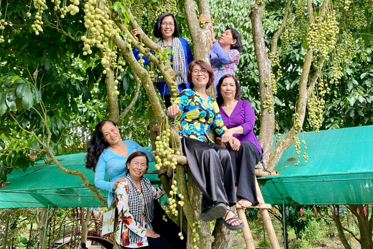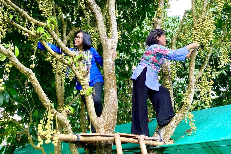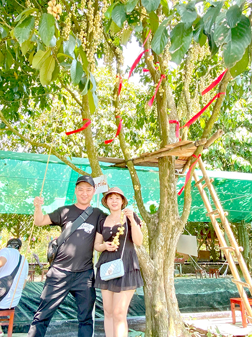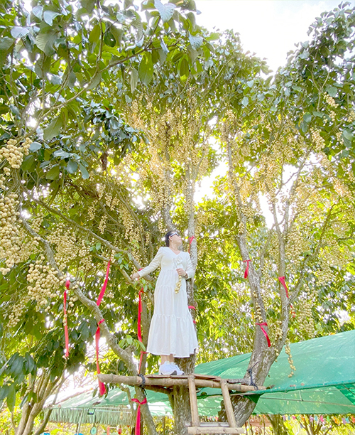Chụp ảnh cùng vườn trái cây trĩu quả