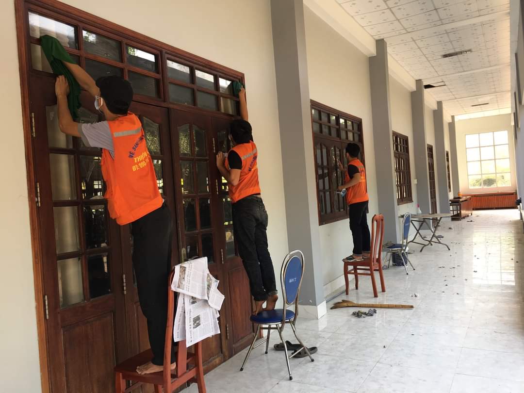 - Vệ sinh bàn ghế, giường tủ, thiết bị văn phòng