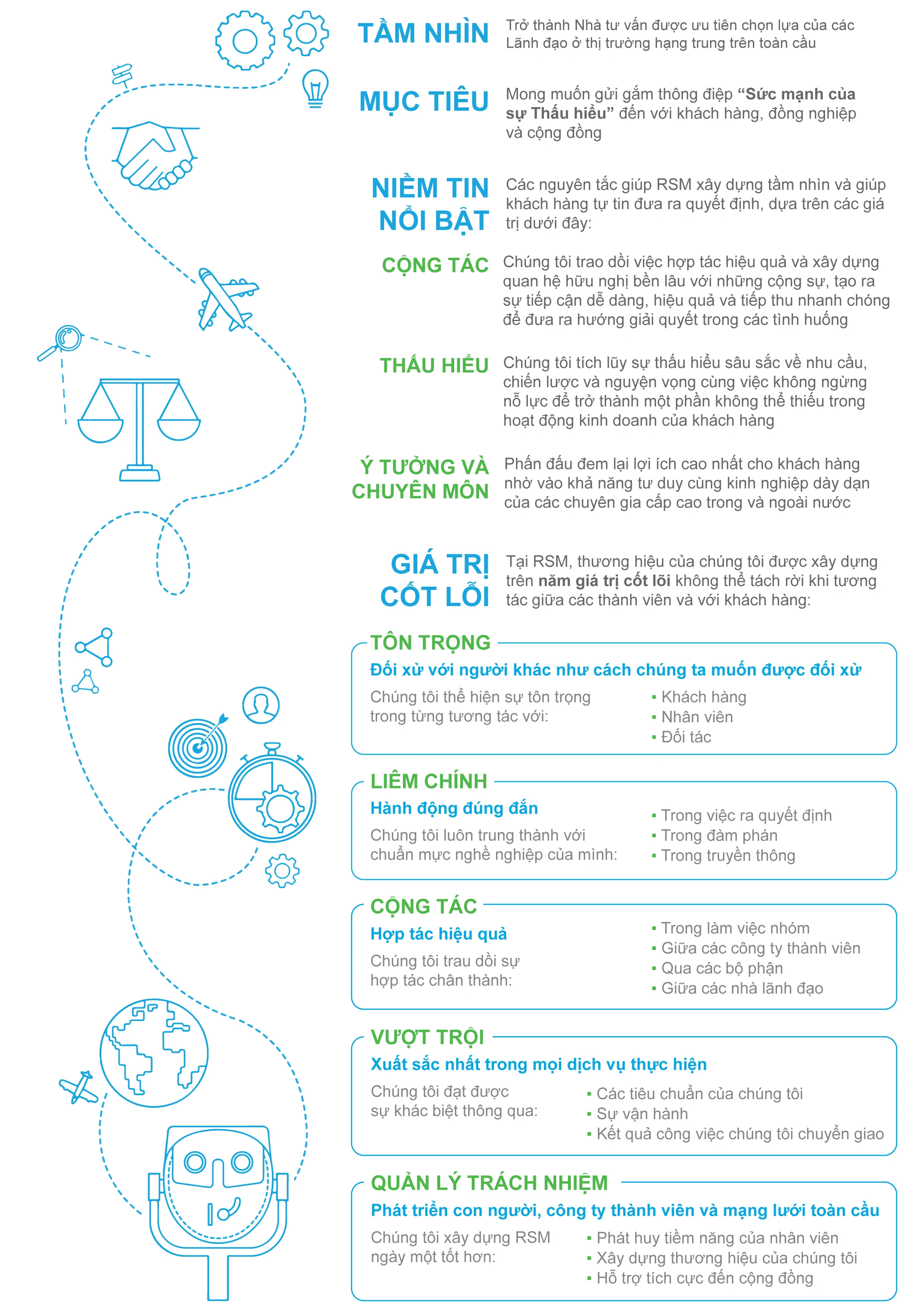 Các nguyên tắc giúp RSM xây dựng tầm nhìn & giúp khách hàng tự tin đưa ra quyết định, dựa trên các giá trị dưới đây: