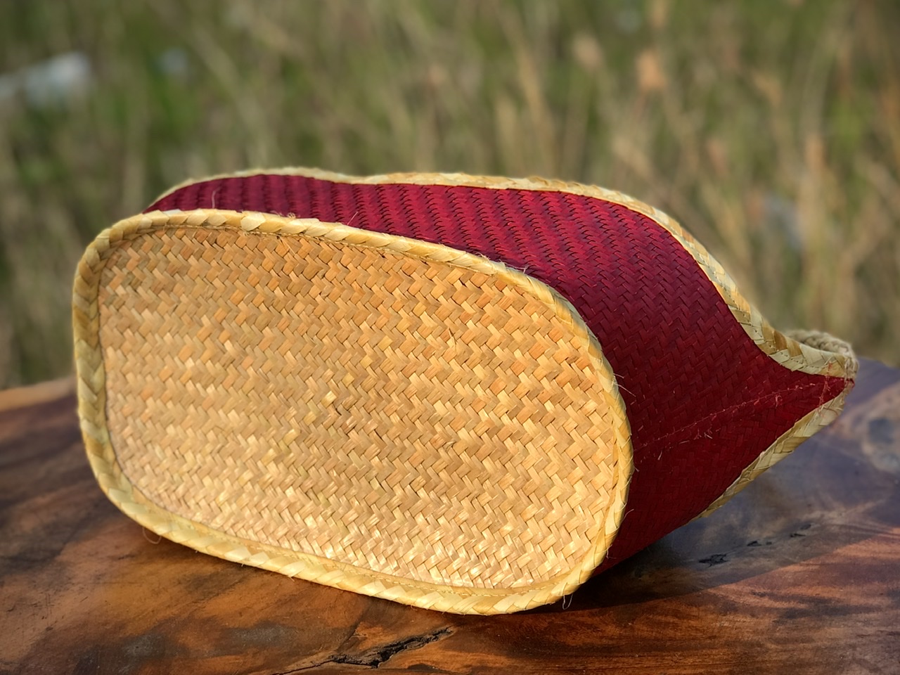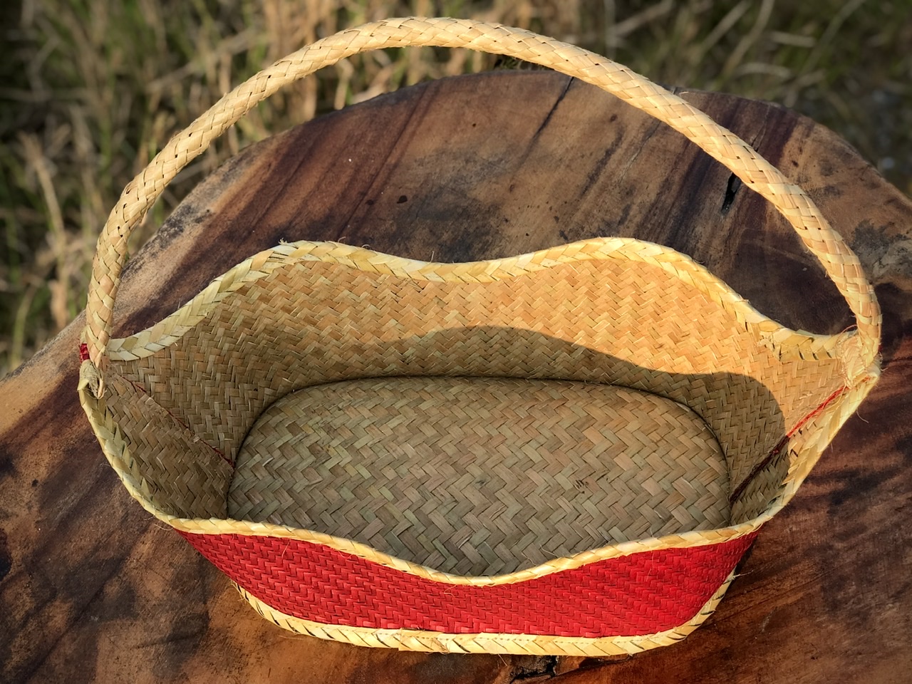 Giỏ quà làm từ bàng tự nhiên 100%, được đan thủ công bởi các nghệ nhân trong vùng. Giỏ có thiết kế độc đáo, giúp ta liên tưởng đến hình chiếc thuyền, giỏ có không gian rộng rãi, có thể chứa được rất nhiều quà tặng.