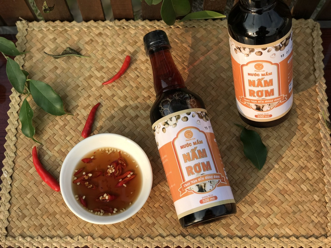 Nước mắm nấm rơm vốn được phát triển theo mong muốn khai thác hết tiềm năng từ món ăn quen thuộc của người Việt. Nhận thấy giá trị dinh dưỡng của cây nấm rơm mang lại cho người sử dụng rất cao nhưng lại chưa được khai thác tốt. Do đó, nước mắm nấm rơm đã ra đời, nước mắm được làm từ nước cốt nấm rơm, vốn được tuyển chọn kỹ nên hương vị của nước mắm rất thanh, không có vị hắc, màu sắc trong trẻo, không bị đục. Đây cũng chính là một trong các sản phẩm mà người ăn chạy hay ăn mặn đều có thể sử dụng được, rất tiện lợi.
