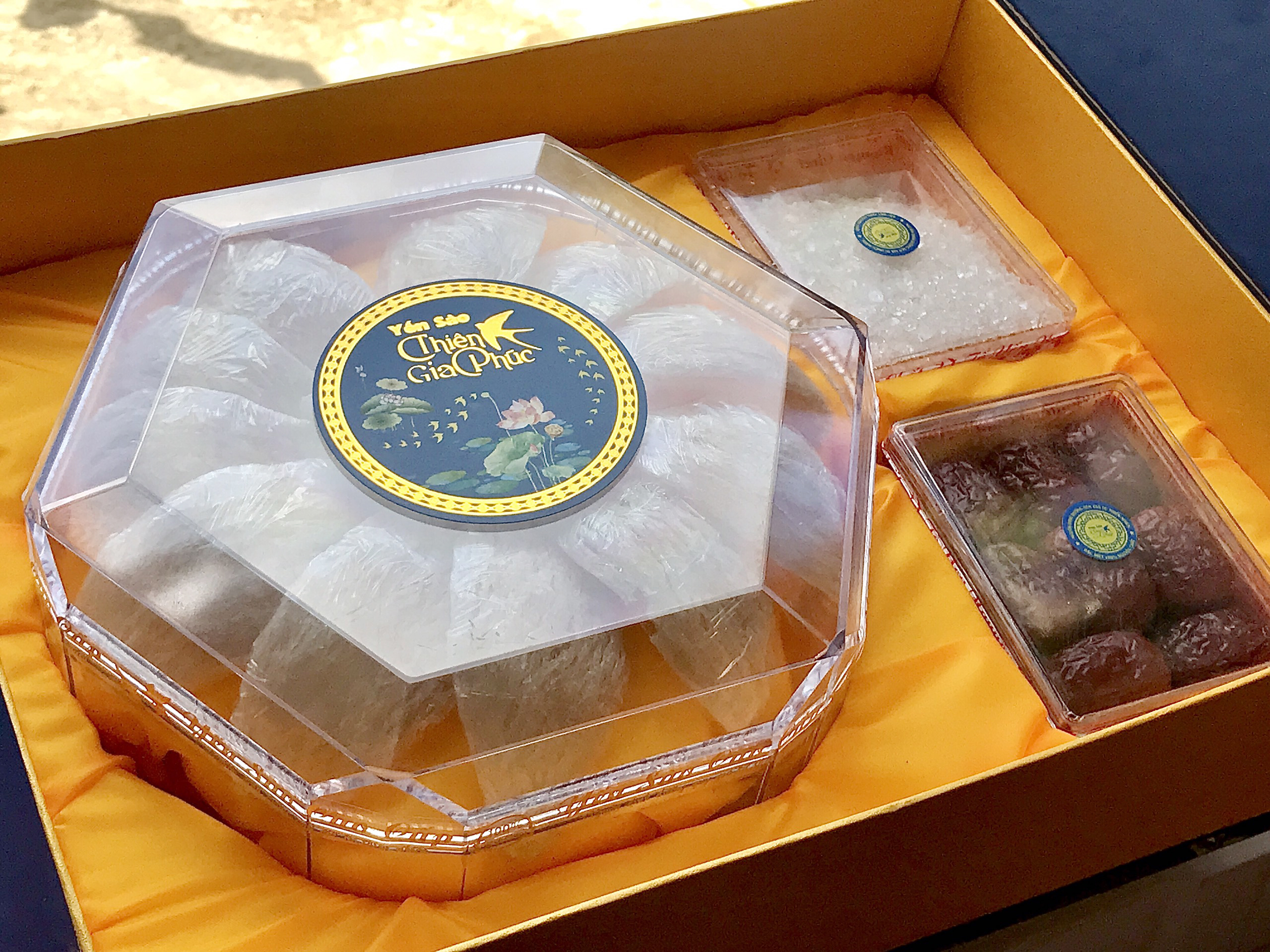 Sản phẩm được đóng gói rất kỹ lưỡng, trong hộp còn có táo và đường phèn. Có thể sử dụng để trưng ăn ngay!