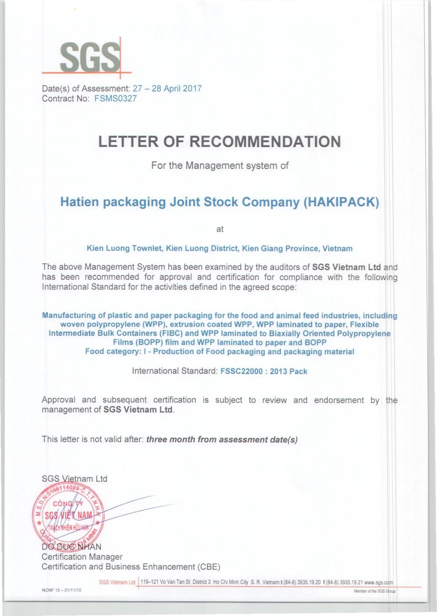 - Tập trung xây dựng hình ảnh là một nhà sản xuất bao Big bag chuyên nghiệp, có năng lực lớn. Với hệ thống quản lý chất lượng theo tiêu chuẩn ISO 9001:20015 và ISO 14001:2015.