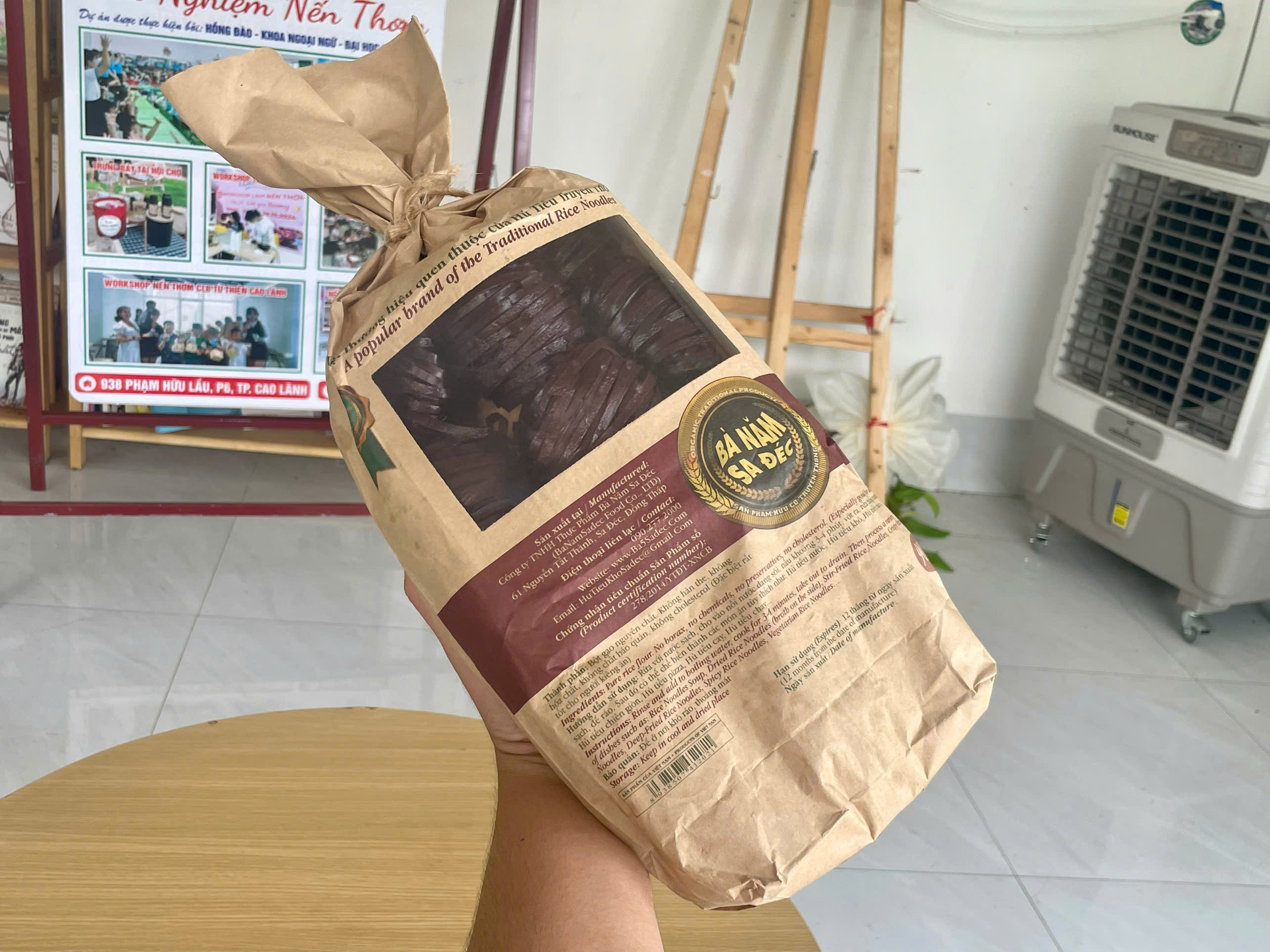 Sản phẩm phở gạo khô có thành phần làm từ 100% bột gạo, không chất bảo quản, không hóa chất đảm bảo an toàn thực phẩm đang có mặt tại các gian hàng của OCOP Kiên An.