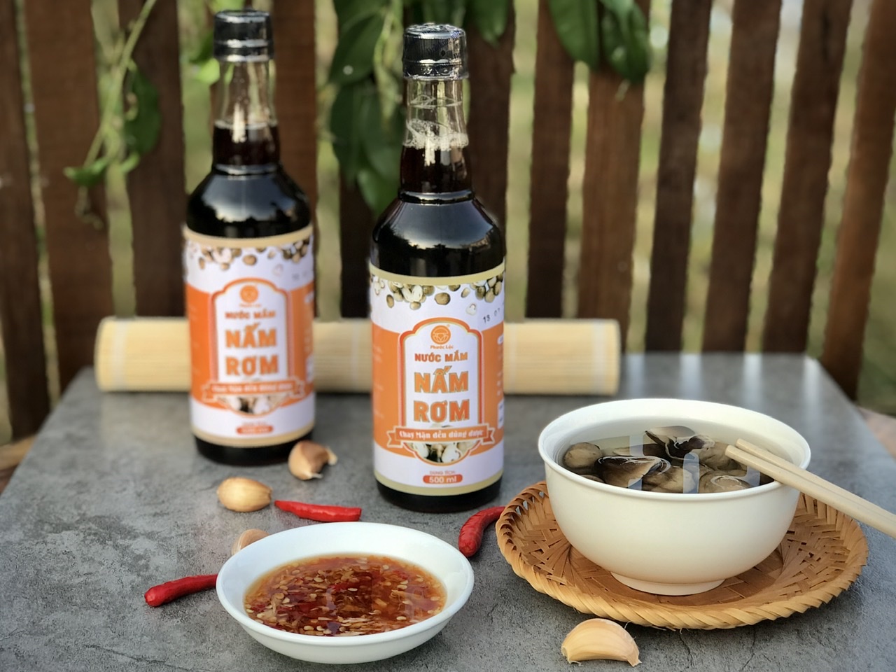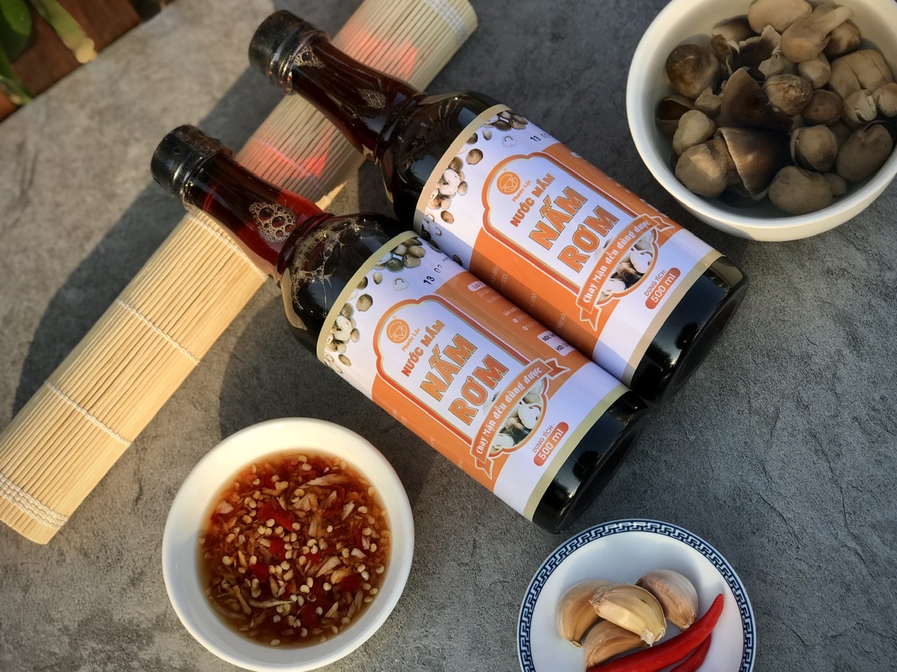 Nước mắm nấm rơm vốn được phát triển theo mong muốn khai thác hết tiềm năng từ món ăn quen thuộc của người Việt. Nhận thấy giá trị dinh dưỡng của cây nấm rơm mang lại cho người sử dụng rất cao nhưng lại chưa được khai thác tốt. Do đó, nước mắm nấm rơm đã ra đời, nước mắm được làm từ nước cốt nấm rơm, vốn được tuyển chọn kỹ nên hương vị của nước mắm rất thanh, không có vị hắc, màu sắc trong trẻo, không bị đục. Đây cũng chính là một trong các sản phẩm mà người ăn chạy hay ăn mặn đều có thể sử dụng được, rất tiện lợi.