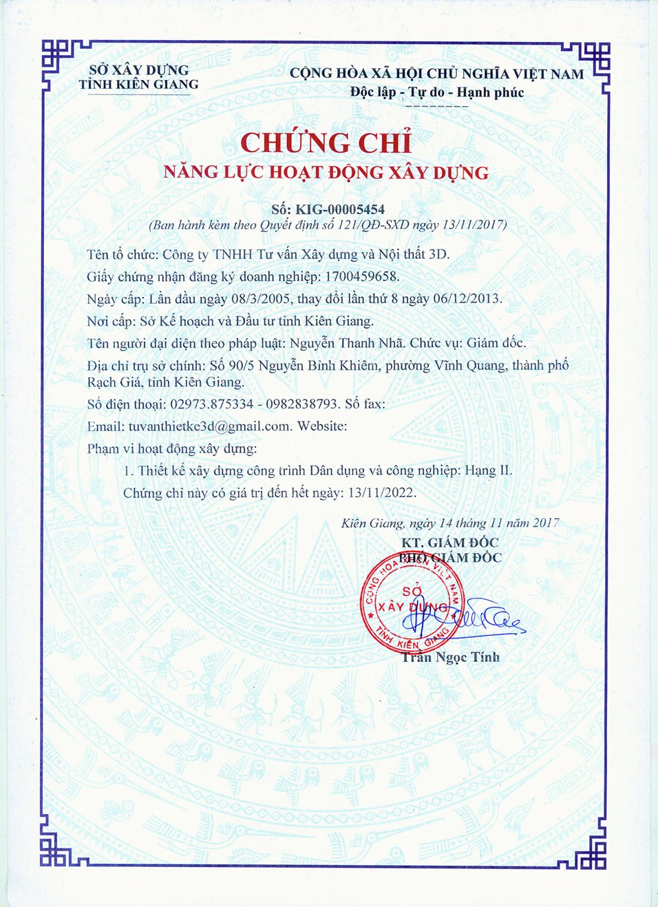 Công Ty Trách Nhiệm Hữu Hạn Tư Vấn Xây Dựng Và Nội Thất 3D được thành lập vào ngày 08 tháng 03 năm 2005, Với nhiều năm kinh nghiệm trong lĩnh vực xây dựng.